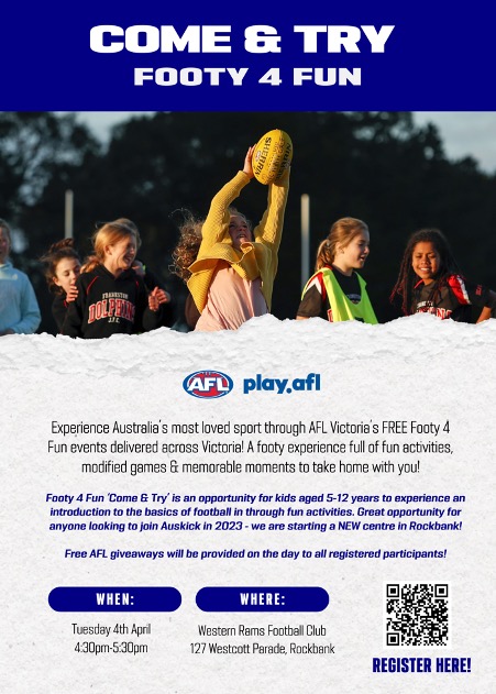 Western Rams Auskick: Footy4Fun Come & Try event (free)