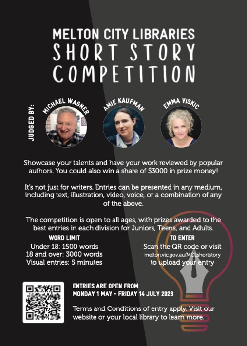• All entries must be submitted online at www.melton.vic.gov.au/shortstory.