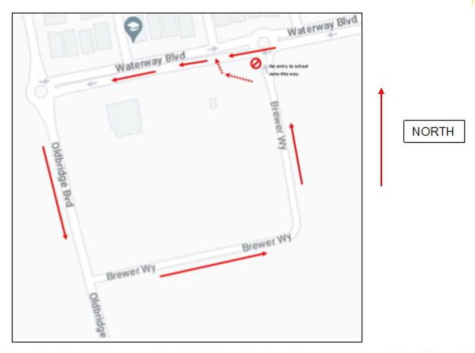 Brewer Way. This avoids parents and guardians jumping the queue, which causes frustration for others and stops traffic