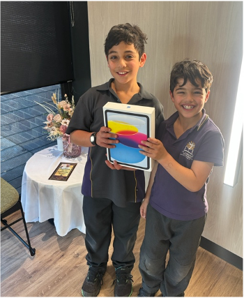 We also congratulate Xavier and Sebastian in Grade Two and Four, who won the prize of an iPad, donated to school by Teltech, for raising the most money. Well done, boys!