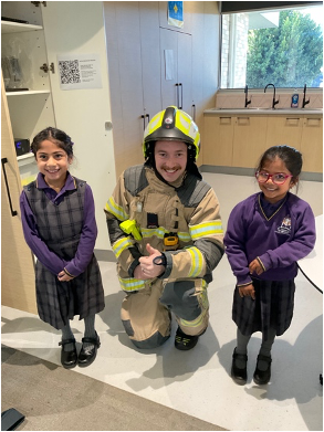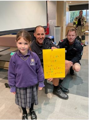 We talked about what an emergency was and when to call 000. Finally, the firefighters gave us some homework to complete with our families to decide on a safe meeting place where we can go in an emergency to stay safe from the fire, and the firefighters can see us. We are excited for the firefighters to come back next Friday for their second visit, where we will get to learn about their equipment and see the fire truck.